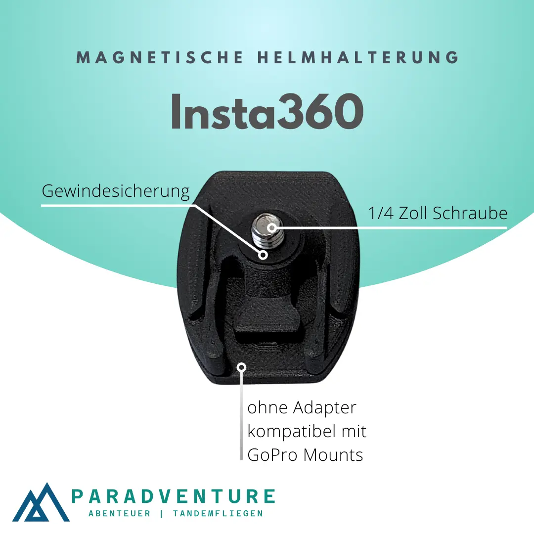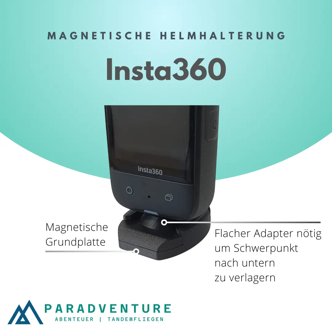 Magnetische Insta360 Helmhalterung für Gleitschirmflieger. Verhindert mögliche Leinenverhänger an der Insta360 Kamera.